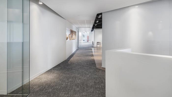 過道的設計:從接待空間通過之后,就進入到空間的內側區域,此處給人的第一特點就是暢通無阻,這也是設計師希望看到的,若是從細節上看,可以看出每一個轉彎的區域都是一個完美的弧度,這樣設計的目的就是希望將空間以弧度向前貫通,讓空間更加的自然、通暢、優美。