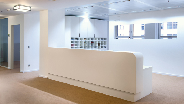 交流區域的設計:此處不僅可供內部員工之間的相互交流,同時也可供與顧客之間的交流,在此次明亮是給人的第一感覺,在設計師的眼中,交流成功的前提就是有一個優質的交流區域,在這里陽光射入室內,讓一切都是那么的開放與和諧。