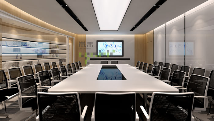 過濾公司辦公室中型會議室設計:這里主要進行的是部門之間的會議,各個部門的負責人在這里各抒己見,大家相互討論、相互交流,其目的就是為了讓企業不斷發展、不斷壯大。