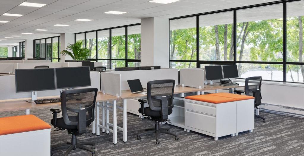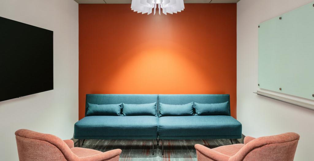 解放開放辦公工作站區域的周邊,同時在更封閉的建筑上實現玻璃正面,沒有留下任何一個角落。一個值得注意的特點是,從空間的核心到辦公區域,以對比地毯作為伴奏,以慶祝視覺興趣。
