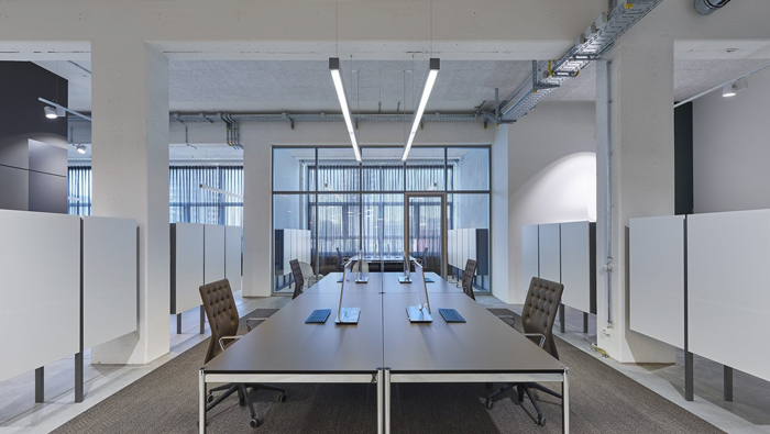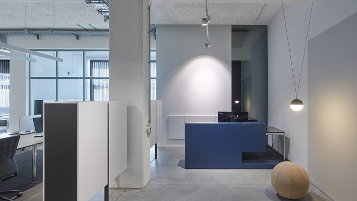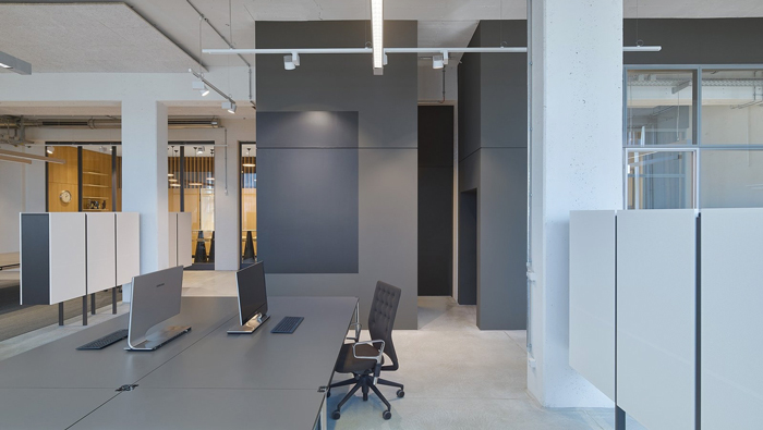 辦公區(qū)域細(xì)節(jié)的設(shè)計(jì):此處可以看出設(shè)計(jì)師在辦公桌的選擇上,可謂是煞費(fèi)苦心,設(shè)計(jì)師的目的就是希望簡單可以進(jìn)行到底,設(shè)計(jì)師希望為員工打造一個(gè)舒適、輕松的辦公場所,辦公桌在員工平時(shí)的辦公中意義十分重大,故此設(shè)計(jì)師希望員工可以自己去安排辦公桌上的裝飾,這可以最大程度上照顧到每一個(gè)人。