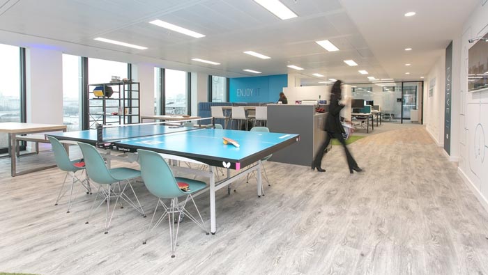 娛樂區(qū)域的設計:乒乓球是室內(nèi)活動的最佳對象,設計師希望讓勞累的員工可以在這里打一場乒乓球競賽,在這里讓員工疲勞的神經(jīng)得到暫時的放松,讓員工在這里既可以鍛煉身體,同時也可以提高企業(yè)的內(nèi)部環(huán)境,讓員工與員工之間相處的更加友好。