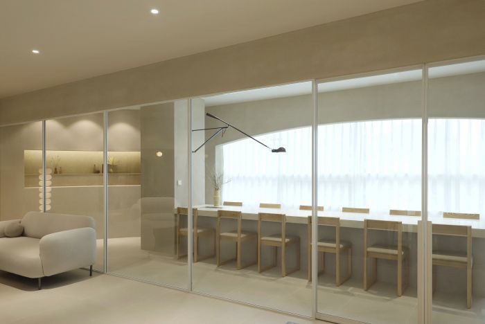 米色的色調(diào)和柔和的光線為空間營造出舒適的氛圍。整個空間呈現(xiàn)出一種輕松、優(yōu)雅的感覺。 企業(yè)希望在為員工提供更好的工作環(huán)境的同時,可以讓員工產(chǎn)生更多的靈感。設(shè)計師將自然元素和紋理放入空間中,希望為空間提供舒適而獨特的體驗。