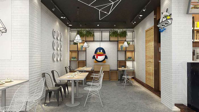茶飲茶餐廳裝飾設計:QQ相信是大部分年輕人一個共同的回憶,大家在上面交友、聊天,拉近了彼此之間的距離,這里也同樣如何,這里拉近了年輕人與自己的關系。