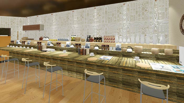 自助茶餐廳餐區(qū)設(shè)計(jì):茶水、飲料、糕點(diǎn)、咖啡無一不備,這樣做是為了做到有效的融合,每個(gè)人的口味、愛好皆不同,業(yè)主要做的就是捕捉最大的公約數(shù),以此滿足各類客戶。
