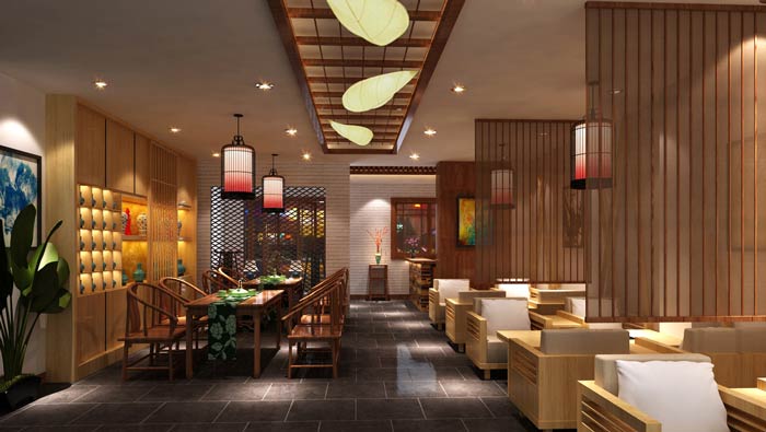 本次為中式茶餐廳裝修設計方案,在設計中設計師將設計風格定位于中式風格,之所以有這樣的設計定位,是因為茶餐廳的地理位置決定的,茶餐廳位于的街道上中式風格林立,設計師為了避免出現突兀,故此以中式風格為設計主線,以現代簡約為副線,打造一個現代與傳統相結合的設計。