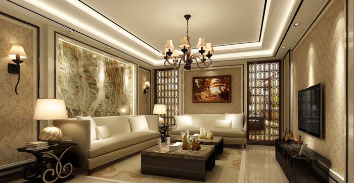 水印城現代新古典別墅客廳裝修設計案例效果圖