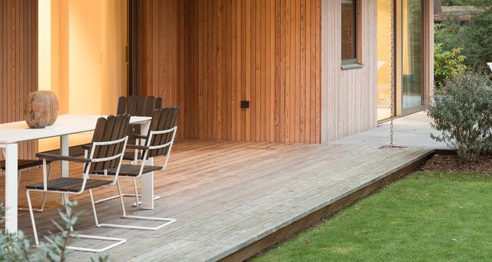 一間自然森林別墅裝修設計案例,空間面積449平方米。通過設計,房子劃分了三個不同的花園空間,每一個有自己的特點。一個露臺連接著廚房和客廳。西面提供了坐、社交和就餐的空間。