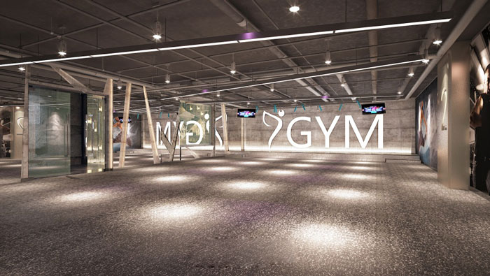 在設計中,打破傳統的健身房理念,大膽的運用金屬、石材等材質。