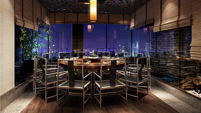肥牛火鍋店中包廂設(shè)計(jì):空間可以容納10個(gè)人,室外景色被很好的引入室內(nèi),就餐人員可以邊吃飯、邊欣賞美景,一舉兩得,讓客戶喜歡這里、愛上這里。