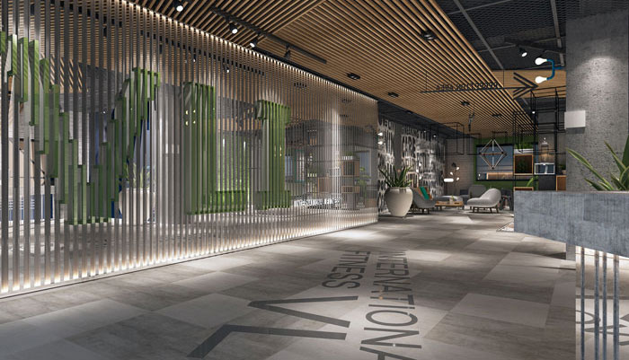 在室內空間中,主色大面積采用大地色(大地灰),不但最具親和力,也能夠讓體能訓練者在運動中逐漸找到運動的節奏,同時可以讓瑜伽類安靜的運動得到一種精神的放松。