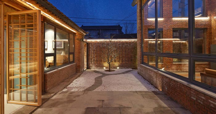 本案為景區三合院民宿設計項目,坐落在自然風景區山腳下,設計保留了傳統的北房,拆除東西兩側的格局,既開闊了視野,又盡可能保證了院內的私密性。