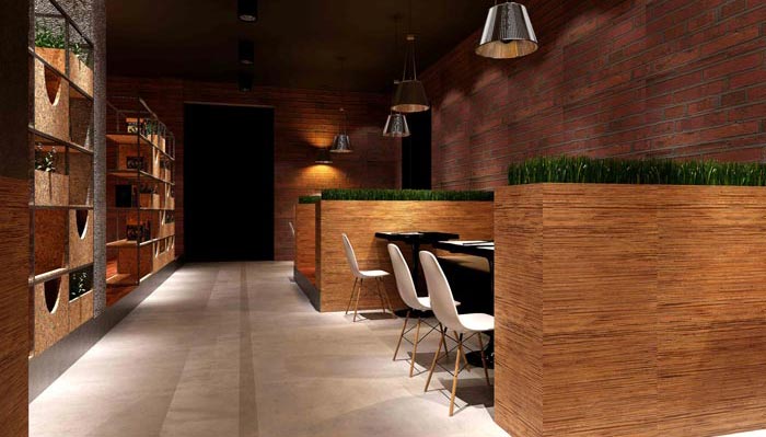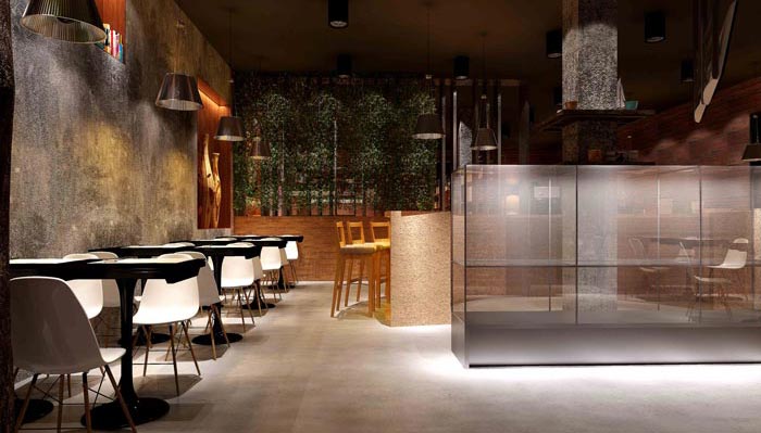 設計師在咖啡廳設計的時候,保持主色調、主體裝飾材料的運用、鋪陳出工業風。