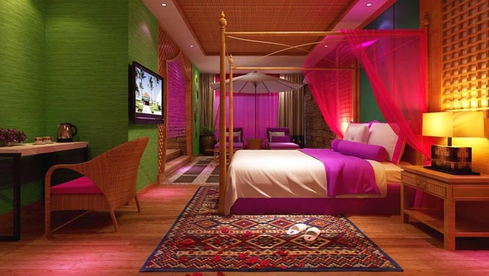 客房的設計:此處給人的感覺仿佛到了馬爾代夫,這也是設計師為哪些沒有條件的戀人準備的,在設計師看來現在很多戀人由于這樣、那樣的事情,無法一起出外旅行,故此設計師希望給彼此一個夢,在這里戀人好似到了馬爾代夫,欣賞到沙灘、海水、日光浴,讓戀人足不出戶享受大美麗的美麗風光。