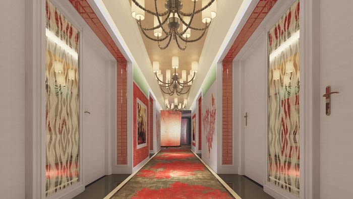 走廊的設計:在此處我們好像行走在城堡之中,這樣的感覺是那么的與眾不同,戀人在這里感覺自己就是這里的主人,這也是設計師希望給大家的一種感覺,設計師希望剝離酒店的陌生之感,因為在設計師看來,很多酒店給客戶的感覺就是熟悉的陌路人,即熟悉又那么的陌生,這也是設計師需要盡量避免的。