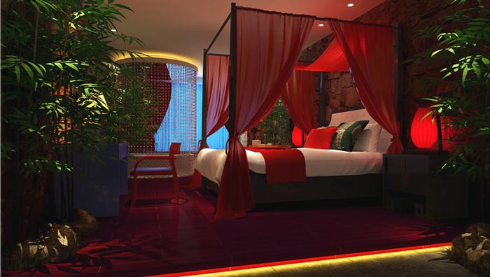 濃情蜜意客房的設(shè)計:此次給人的第一感覺好似一個夢,一個每個人都會做的夢,在這里女孩遇到了自己的白馬王子,男孩遇到了自己的另一半,一切都是那么的讓人陶醉,在這里戀人將開啟一個旅程,那就是通往幸福的旅程,在這里為雙方留下一個終生的回憶。
