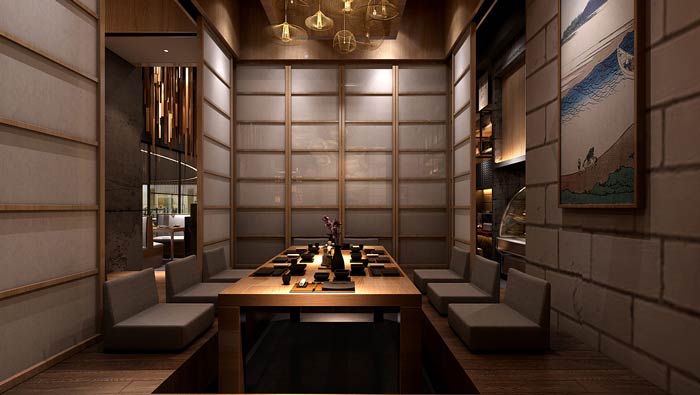 日式料理餐廳包廂設計:一個安靜、愜意的空間,是現代人迫切需要的,在這里大家可以遠離快速發展的時代,在這里大家可以喝喝小酒,在這里讓就餐成為一種享受。