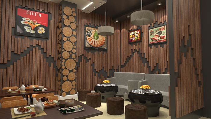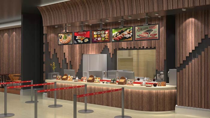 日式快餐廳收銀區(qū)設(shè)計(jì):在這里設(shè)計(jì)師的設(shè)計(jì)重點(diǎn)就是分流,設(shè)計(jì)師要做的就是將人流導(dǎo)向更加的合理化,避免出現(xiàn)空間的擁擠,讓客戶(hù)從進(jìn)門(mén)到用餐都體會(huì)到井然有序。