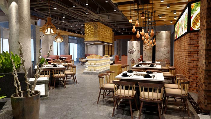 私家菜館餐區裝修設計:這里有景區特有的菜肴,這里給客戶的就是一個字——鮮,材料鮮、做法鮮、菜肴鮮,讓客戶在這里體會到不一樣的風土人情,讓客戶在這里享受生活。