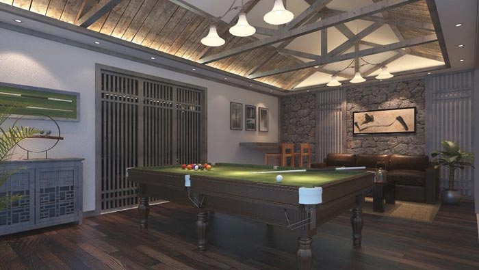 娛樂(lè)區(qū)域的設(shè)計(jì):當(dāng)朋友們交談感覺(jué)乏味的時(shí)候,可以在這里打打臺(tái)球,相互之間彼此活動(dòng)一下,室內(nèi)活動(dòng)本就不多,再加上此處的條件有限,臺(tái)球無(wú)疑是最佳的選擇,但是此處的氛圍卻可以完全彌補(bǔ)這樣的缺憾,沒(méi)有吵雜的聲音、沒(méi)有光污染,有的只是我們?cè)谶@里,感覺(jué)我們好像脫離了世界一般,進(jìn)入到另外一個(gè)維度。