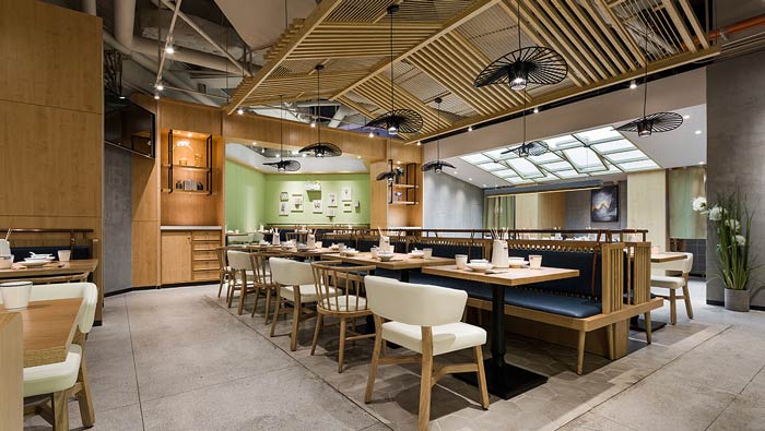 小吃店餐區(qū)裝修設計:簡約、精致、柔和的餐區(qū)設計,為小吃店營造了不同的就餐氛圍,在這里環(huán)境好、美食香,兩兩相加絕不是一加一,而是為傳統(tǒng)的小吃店賦予了全新的生命。