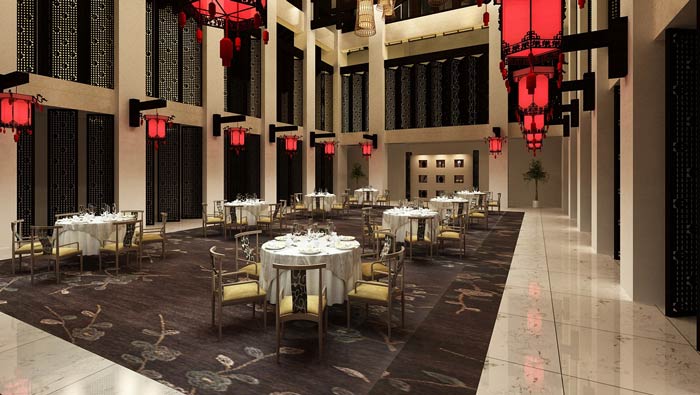 中餐廳大廳餐區設計:這里在很多情況下,都是企業內部的聚餐,整個空間的餐位都是可以調整的,或增加或減少,根據客戶的人數所定。