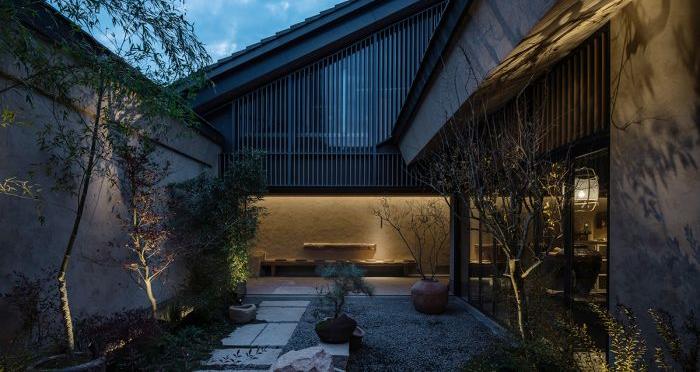元古雲境是中國西南地區的首店,也是成都的第一家店。餐廳位于成都太古里的二樓和三樓,通過樓梯進行連接。入口設計采用老石板和老木板,給人一種沉穩且神秘的感覺。三樓平臺上有一個精致的小院,與自然更加親近。營業區分為廚房、包間、洗手間、吧臺、院子和散臺區。吧臺、院子和散臺區互為景觀,相互依存。洗手間和包間位于廚房的角落,可以控制成本,減少干擾。散臺區相對獨立,安靜,讓人更加愜意。設計的靈感來自于元古精神,即簡單、自然、溫暖。在解決動線問題、空間利用率、節能和光線等問題后,自然形成了這種設計。