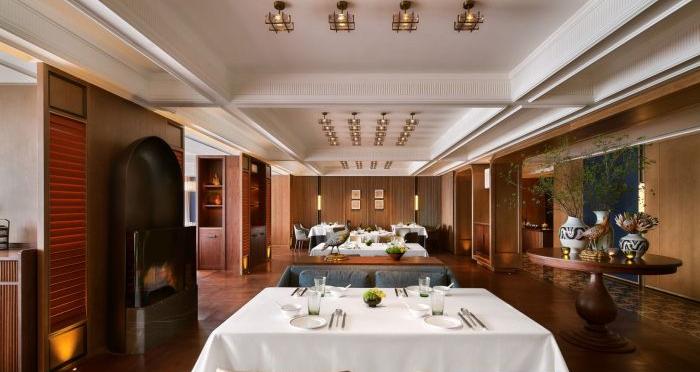 這是一家致力于傳承和創(chuàng)新中餐文化的米其林三星餐廳,在上海的新榮記餐廳設(shè)計中,設(shè)計師以“求真至美”為主題,通過簡單優(yōu)質(zhì)的食材和精湛的烹飪技藝,創(chuàng)造出獨特的美食體驗。設(shè)計師在空間中運用東方風(fēng)格的元素,創(chuàng)造出安靜幽靜的就餐環(huán)境,同時利用采光和燈光的設(shè)計,營造出柔和的氛圍。設(shè)計還通過提取蓮花元素,將品牌內(nèi)涵延伸到空間的各個細(xì)節(jié)之中。整個餐廳的設(shè)計旨在展現(xiàn)中國飲食文化的精髓,并給人們帶來返璞歸真、靜美的用餐體驗。
